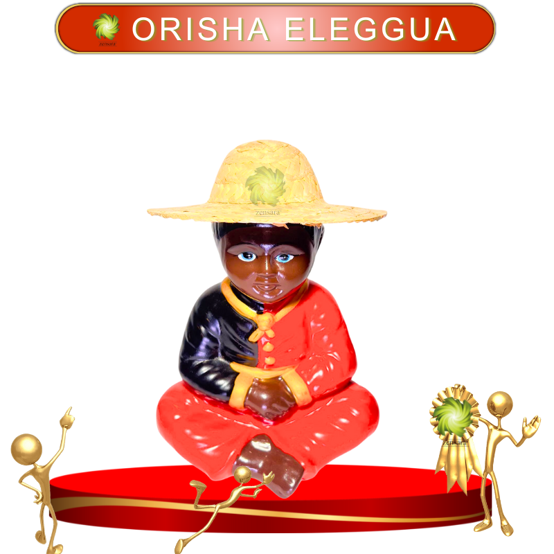 - Composición: Consta de tres piezas: un pedestal base, una figura de Elegguá sentado y una casa, todo en perfecta armonía para la representación del Orisha.
