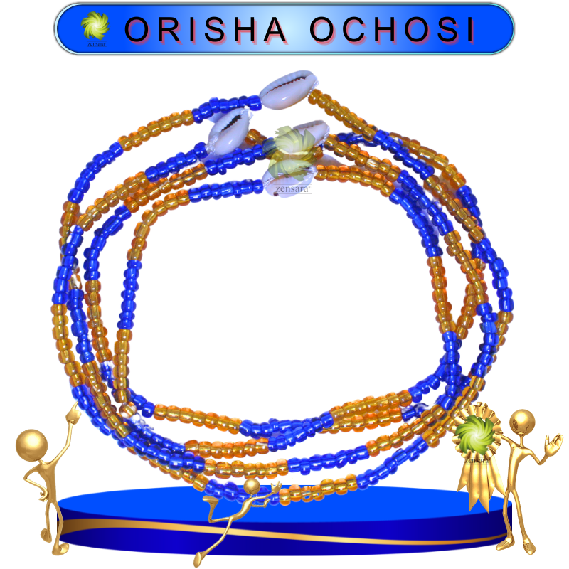 Este collar de Orisha Ochosi combina la fuerza y la protección del Orisha de la caza, la justicia y los caminos abiertos, con la energía protectora del Caury, un símbolo ancestral de abundancia y protección espiritual.