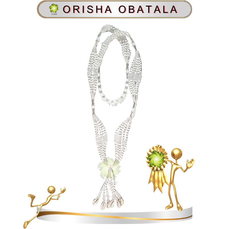 🔸 Elaborado con chaquiras blancas y plateadas, los colores sagrados de Obatalá.
