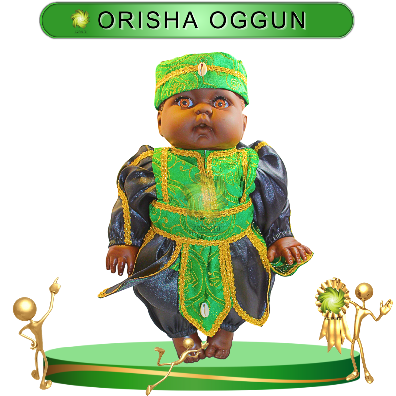 Diseño: Muñeco de alta calidad con detalles de gala, representando la figura de Oggún en su faceta de guerrero.