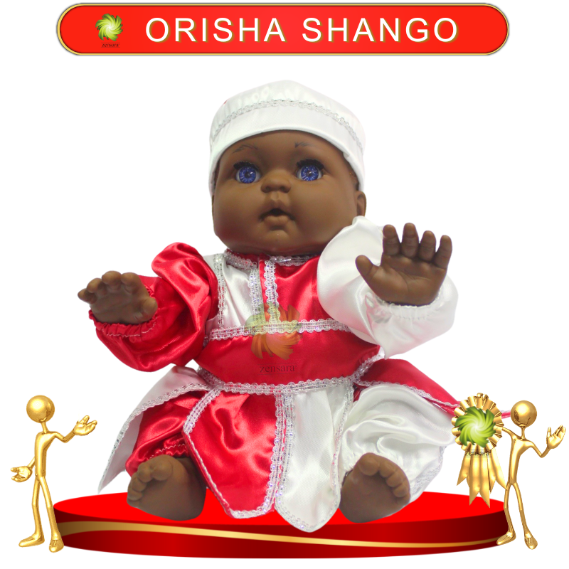 El Muñeco Gateador Orisha Shango de Zensara es una representación sagrada del Orisha del trueno, el fuego y la victoria. Vestido con un majestuoso traje de satín en rojo y blanco, simboliza el liderazgo, la pasión y la justicia que Shango otorga a sus devotos. Su energía es ideal para quienes buscan fuerza, éxito y protección en su vida.