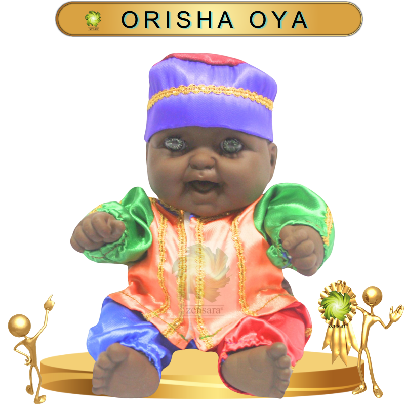 El Muñeco Toby Orisha Oya de Zensara es una representación de la imponente Orisha de los vientos, las tormentas y los cambios transformadores. Vestido con un majestuoso traje de satín en tonos vino, morado y marrón, refleja su dominio sobre las fuerzas de la naturaleza y su papel como guardiana del equilibrio y la justicia. Este muñeco es un símbolo de poder, valentía y evolución espiritual.