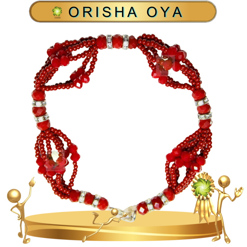 Oya es la Orisha de los vientos, la tempestad y la transformación. Su energía promueve la evolución personal, la protección en tiempos difíciles y la capacidad de superar obstáculos. Las cuentas rayadas representan la dualidad y el equilibrio necesario para enfrentar cualquier adversidad.