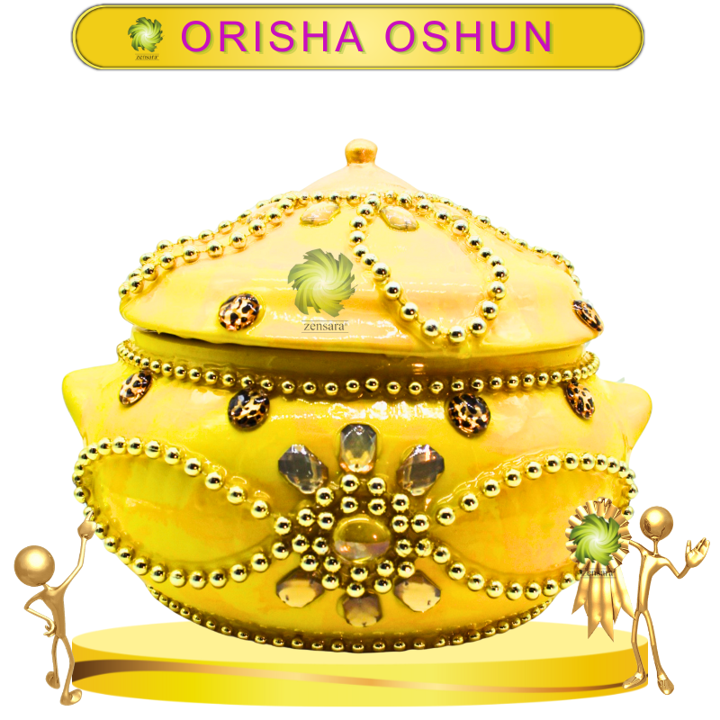 Oshún, la diosa del amor, la dulzura y la prosperidad, es venerada a través de ofrendas que se resguardan en sopera. Este objeto simboliza la conexión con su energía de amor, fertilidad y abundancia.