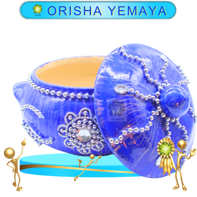 La Sopera Orisha Yemayá Decorada es un objeto sagrado cuidadosamente elaborado para resguardar y honrar la esencia de Yemayá, la madre de todos los orishas y señora de los mares. Este recipiente espiritual combina elegancia y devoción, ideal para ceremonias, ofrendas o exhibición en altares.