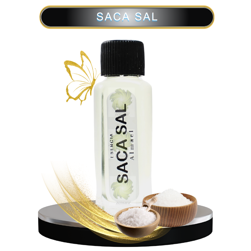La Esencia "Saca Sal" en Zensara es un poderoso extracto espiritual diseñado para eliminar la mala suerte, la negatividad y los bloqueos energéticos que impiden el avance en la vida. Su fórmula especial combina hierbas y esencias místicas con la energía purificadora del agua y la tierra, ayudando a romper ciclos de desgracia, abrir caminos y atraer la buena fortuna.