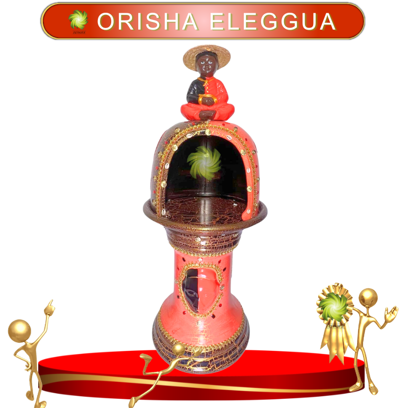 Elegguá es el guardián de las puertas, el que abre los caminos y guía a los devotos en su andar. Esta casa representa la protección y la bendición de Elegguá en tu vida. El pedestal y la figura sentada simbolizan su presencia sólida y su capacidad para dirigir el destino de quienes lo invocan.