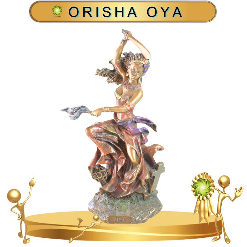 • Diseño: Figura detallada de Orisha Oya sosteniendo un machete de bronce, ideal para altares o exhibición.